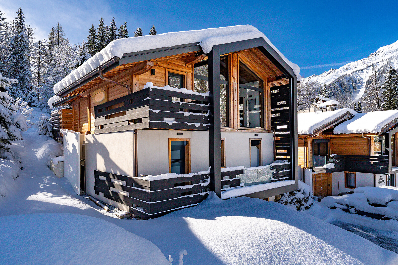 - Situation élevée et immenses fenêtres offrant une vue ininterrompue sur les montagnes jusqu'à la fin de la vallée de Chamonix